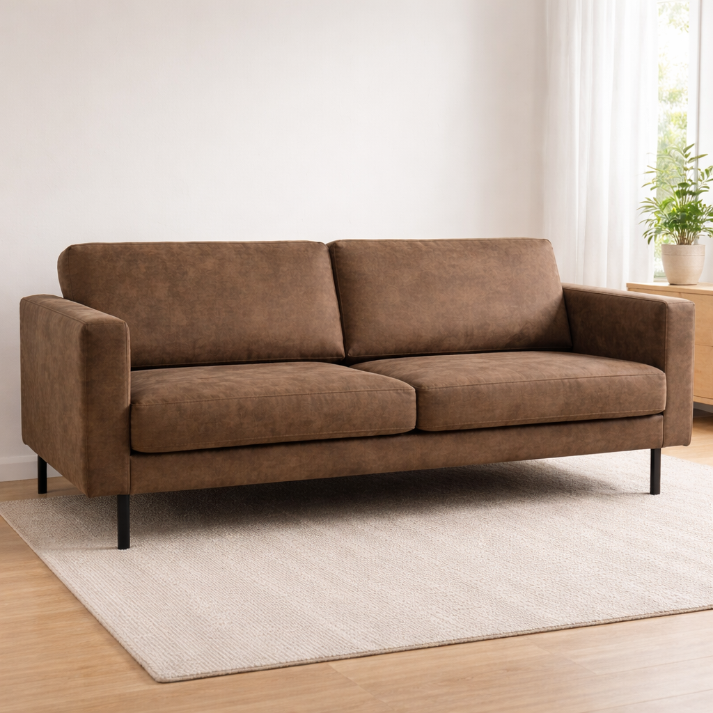 Line-leposohva yhdistää skandinaavisen muotoilun ja pehmeän, nahkamaisen Preston-tekstiilinahkakankaan. Pinta näyttää ja tuntuu aidolta nahalta, mutta on huoleton arjessa ja helppo pitää siistinä. Ilme on rauhallinen ja ajaton, sopiva monenlaiseen olohuoneeseen ilman että sohva alkaa hallita tilaa liikaa.