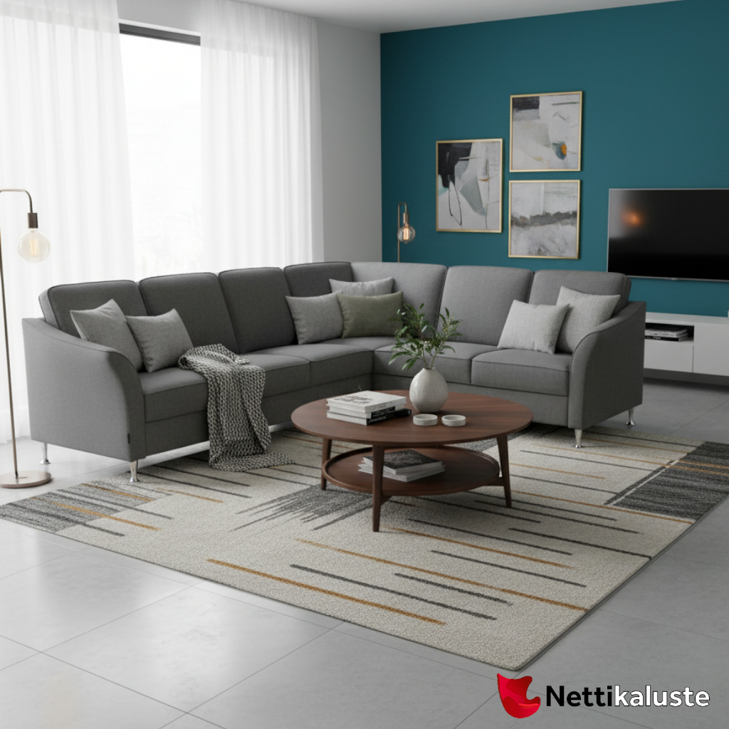 Zara-kulmasohva tuo olohuoneeseen modernia ilmettä ja rauhallista, kutsuvaa tunnelmaa. Siro muotoilu,