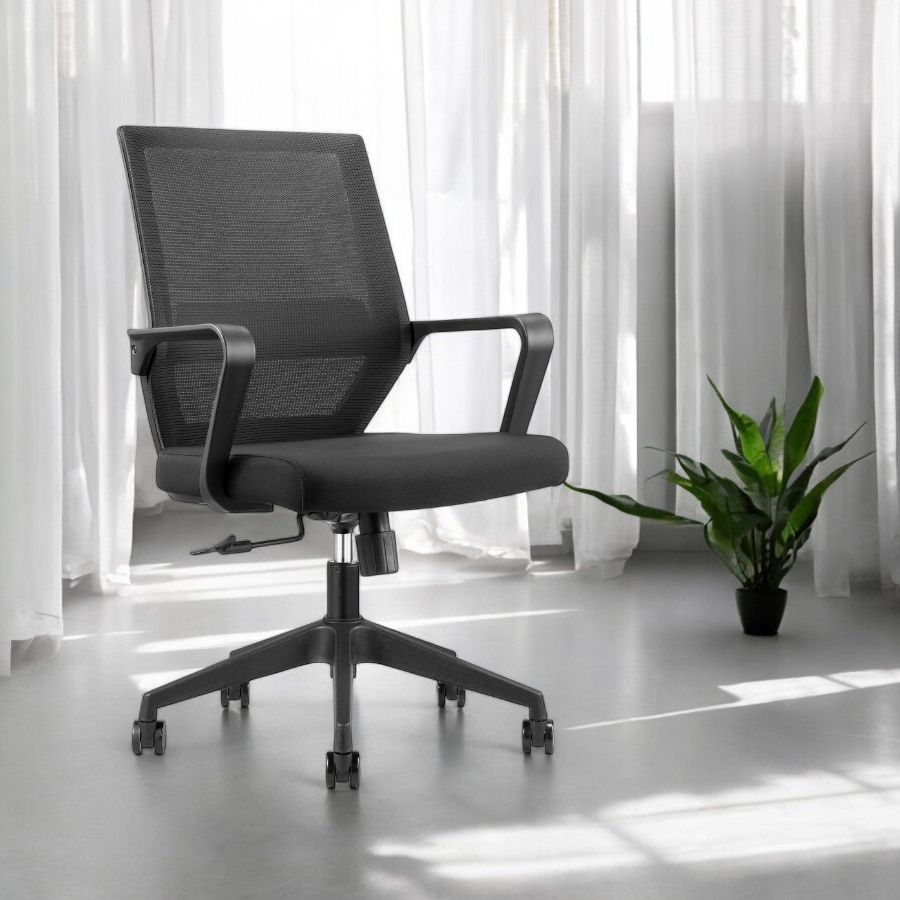 Tyylikäs ja moderni Star työtuoli opiskelijalle tai kotikonttoriin. Matalaselkäisessä työtuolissa on ergonomisesti muotoiltu selkänoja, käsinojat ja mukavasti pehmustettu istuin.
