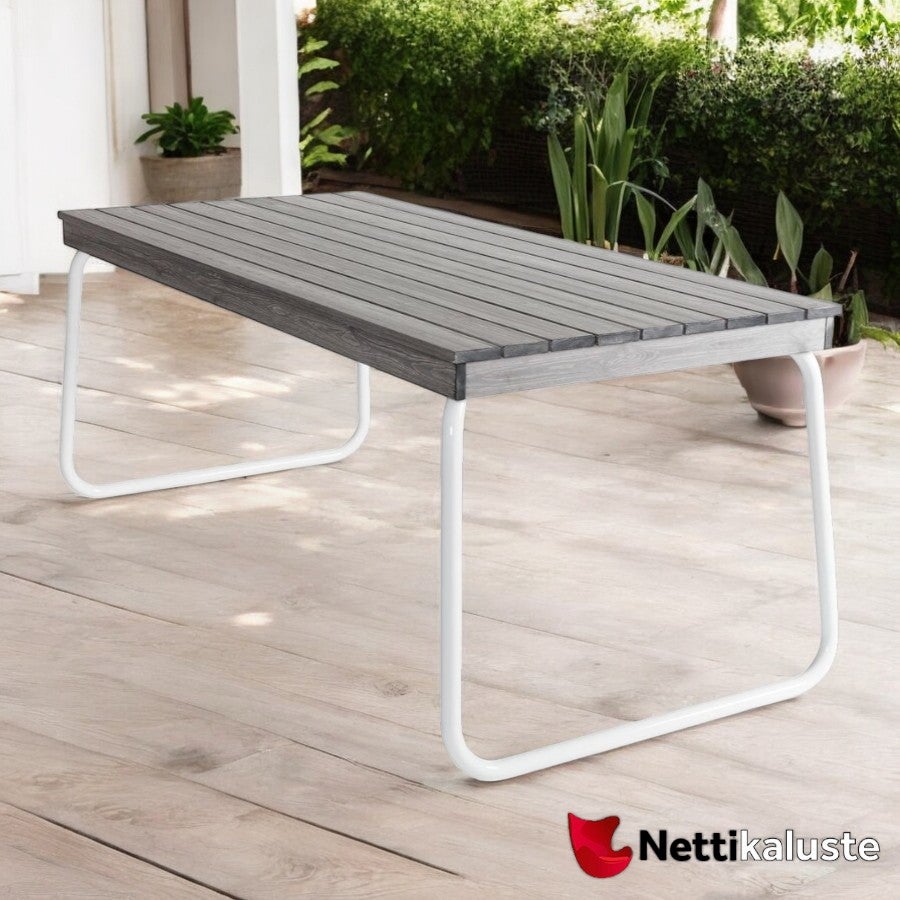 Varaxin valkoisella Suvisaari pöydällä tuot pihamaalle tai terassille ajatonta tyyliä. Ensimmäiset pöydät valmistettiin Suomessa jo 1960-luvulla ja Suvisaari pöytä on edelleen suomalaisten suuri suosikki. Pöydän runko on valmistettu valkoiseksi maalatusta teräsputkesta ja kansiosa on valmistettu laadukkaasta männystä ja se on maalattu harmaaksi ja puunsyyt on nostettu esiin hiomalla. Pöydän ympärille mahtuu mukavasti 6 tuolia.