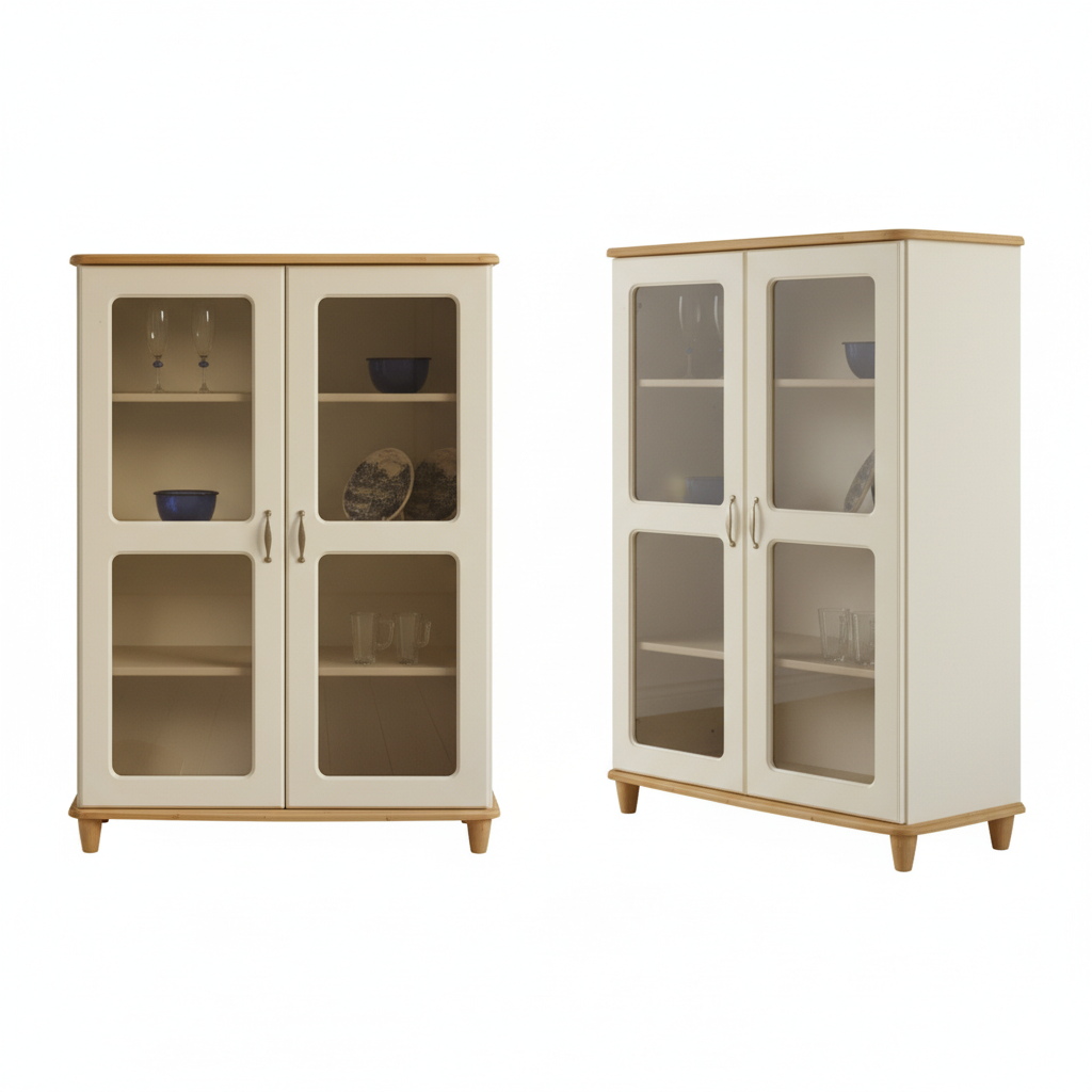 MDF- ja massiivimäntyrakenne yhdistettynä laadukkaisiin Salice-saranoihin varmistaa, että vitriini palvelee vuodesta toiseen