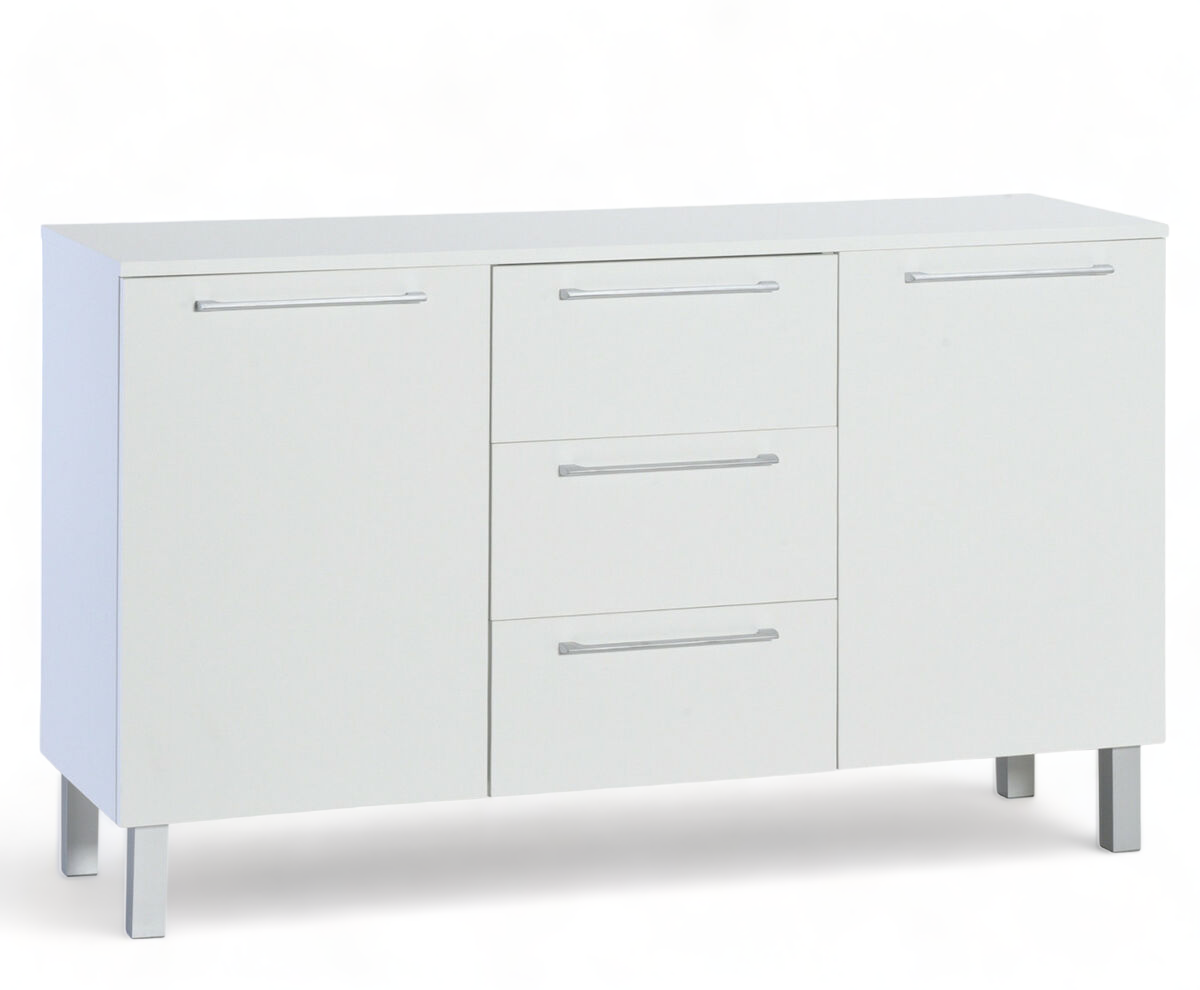 Ajaton ja klassinen Lumme senkki sopii suomalaiseen kotiin. Senkissä on kolme tilavaa vetolaatikkoa ja kaksi ovikaappia.