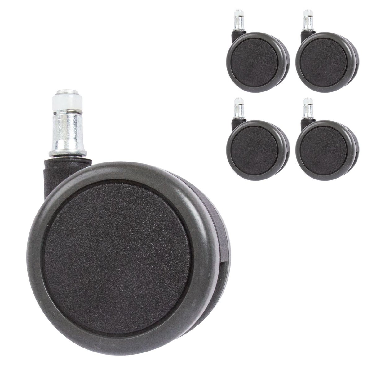 Useimpiin työtuoleihin sopiva pyöräsetti sisältää 5 kpl pyöriä.