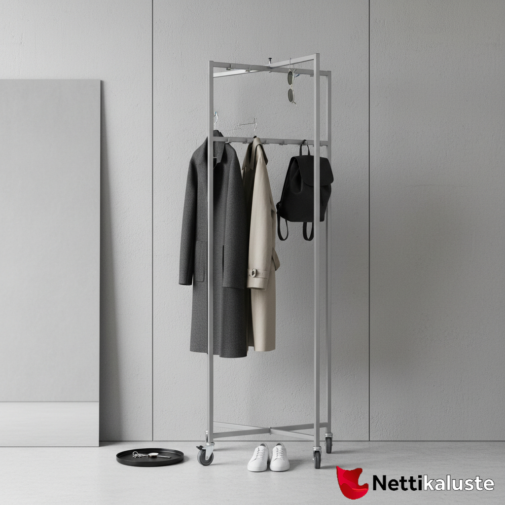 Fold-lattianaulakko on ratkaisu tiloihin, joissa tarvitaan joustavaa ja helposti muuntuvaa säilytystä. Kotimainen valmistus takaa laadun, joka kestää vuosien käytön niin kodissa, toimistossa, pukuhuoneissa kuin yhteisissä tiloissa. Taittomekanismin ansiosta naulakon saa käyttöön tai varastoon muutamassa sekunnissa — ilman työkaluja, ilman vaivaa.