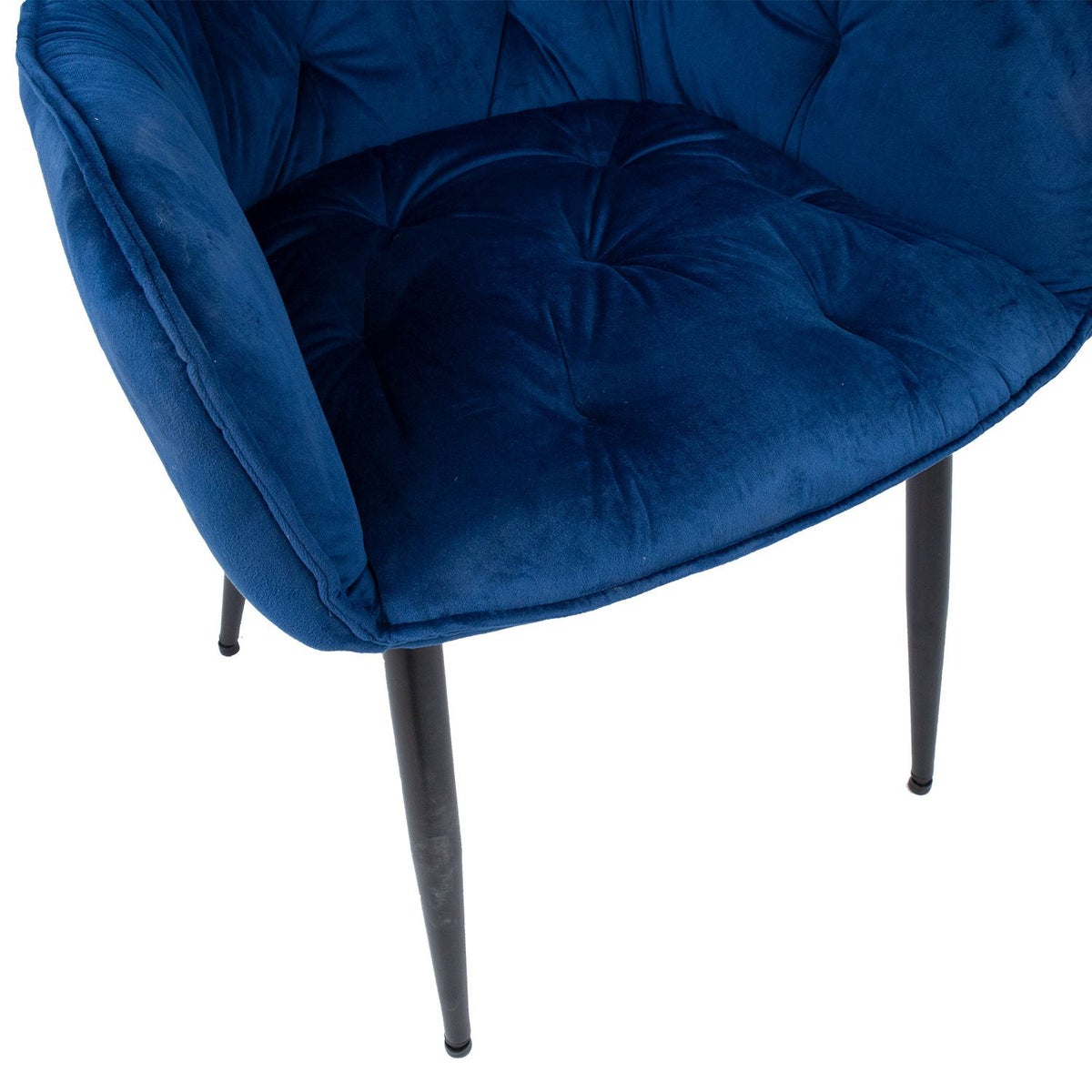 Velvo tuolin pehmeälinjainen, pehmustettu istuinosa tukee selkää ja käsivarsia mukavasti, joten se on erinomainen valinta pitkiin illanistujaisiin perheen ja ystävien seurassa. Tuoli on verhoiltu kauniilla ja aina tyylikkäällä samettikankaalla, kokonaisuuden kruunaa mustat pulverijalat.