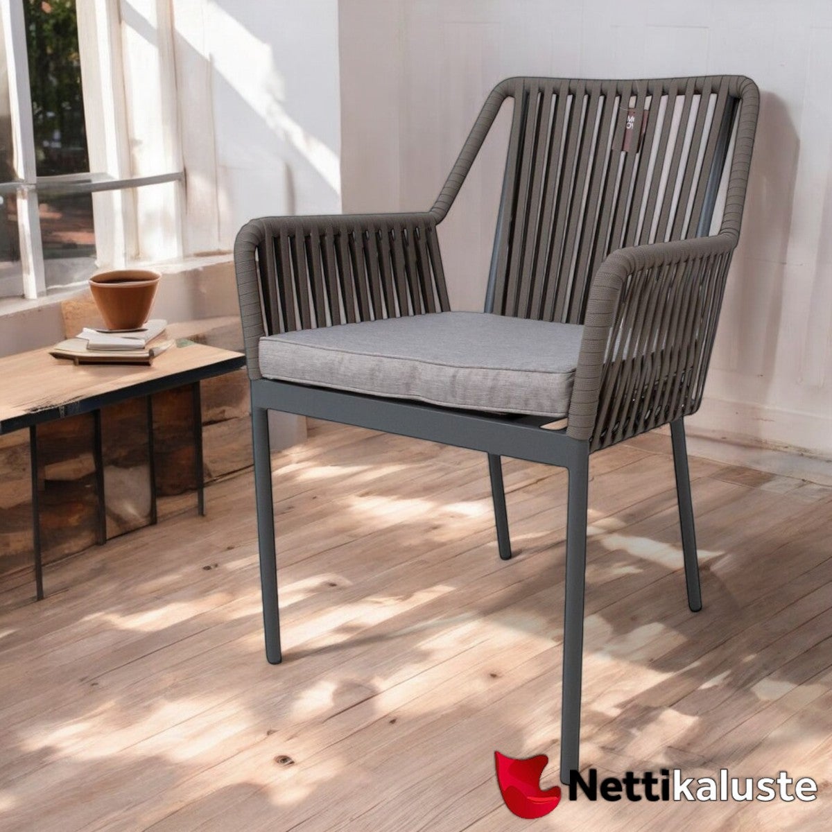 Selkänojassa ja käsinojissa tyylikkäät tekstiiliköysipunokset