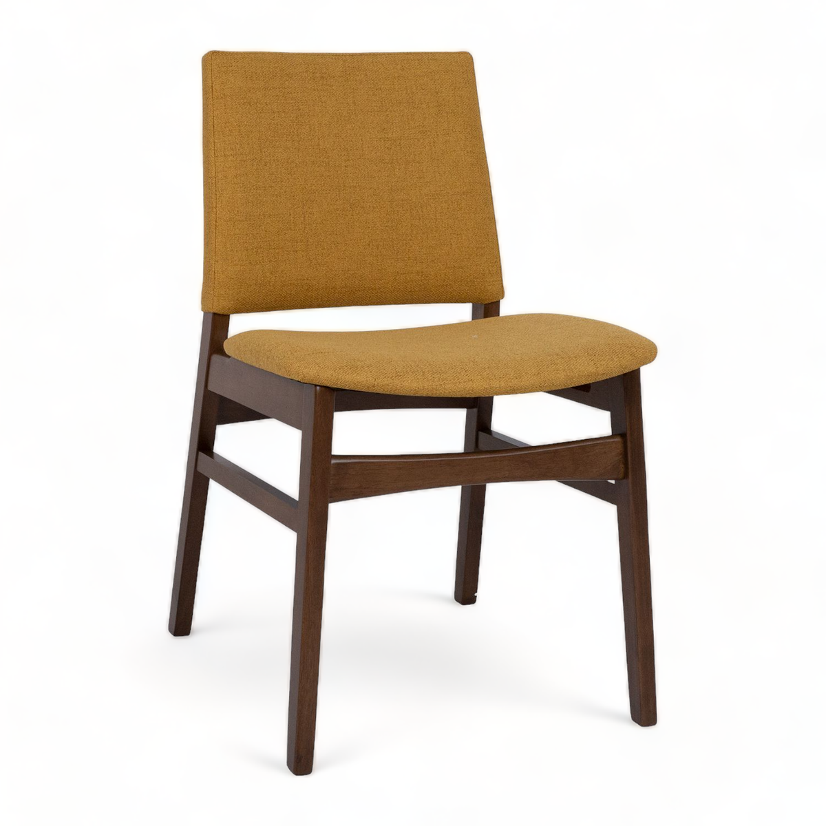 Pirteä Indy tuoli pehmustetulla pirteän keltaisella kankaalla verhoiltuna. Indyn tuolin runko on kestävää kumipuuta, jossa on lämmin pähkinän sävyinen viimeistely. Yhdistä Indy ruokatuoli haluamaasi ruokapöytään.