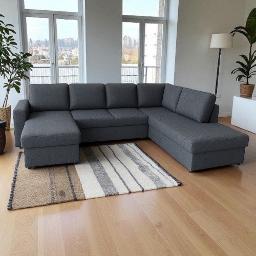 Astetta ylellisemmät ja tilavammat ratkaisut odottavat sinua Susanna Jumbo U-kulmasohvan muodossa. Tämä upea huonekalu ei pelkästään tarjoa mukavaa istumista koko perheelle, vaan siinä on myös kaksi kätevää vuodevaatelaatikkoa sekä suuri, muhkean kokoinen 151x260 cm vuode.