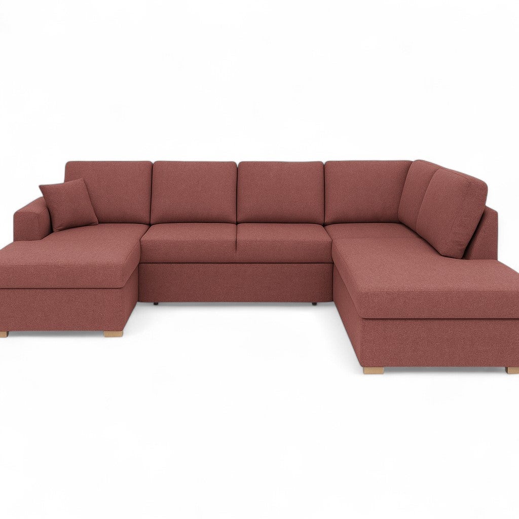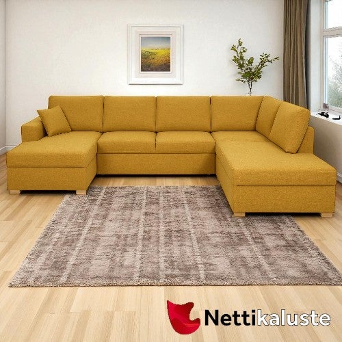 Sohva muuntuu hetkessä suureksi lisävuoteeksi (148×270 cm), ja pitkän divaaniosan alla oleva tilava vuodevaatelaatikko auttaa pitämään olohuoneen siistinä.