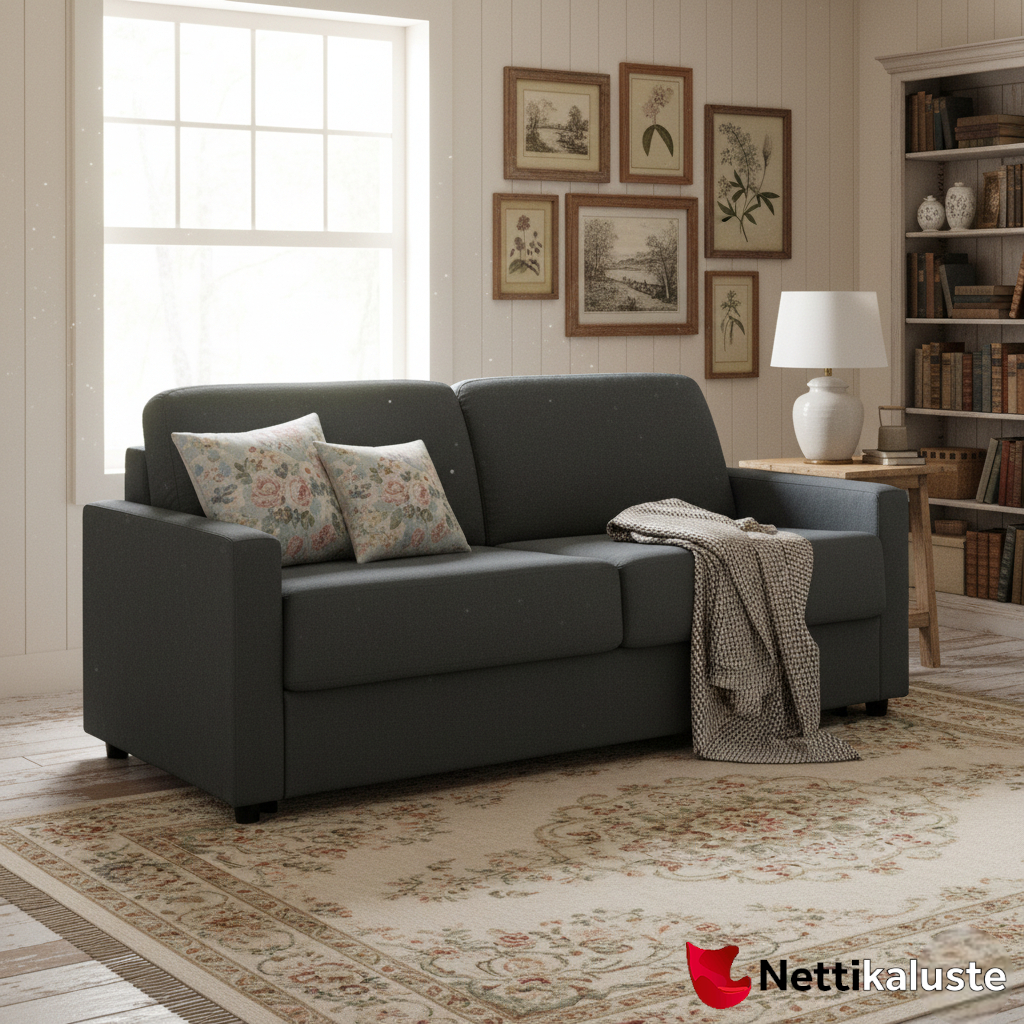 Mona-vuodesohvan ytimessä on Bonnel-jousitettu joustinpatja, joka takaa leppoisat yöunet joka ilta. Metallirunkoinen vuode avautuu vaivattomasti rullaamalla, ja sinun ei tarvitse huolehtia istuin- tai selkätyynyjen irrottamisesta vuodetta avattaessa. Tämä tekee Mona-sohvasta paitsi tyylikkään myös äärimmäisen käytännöllisen valinnan.