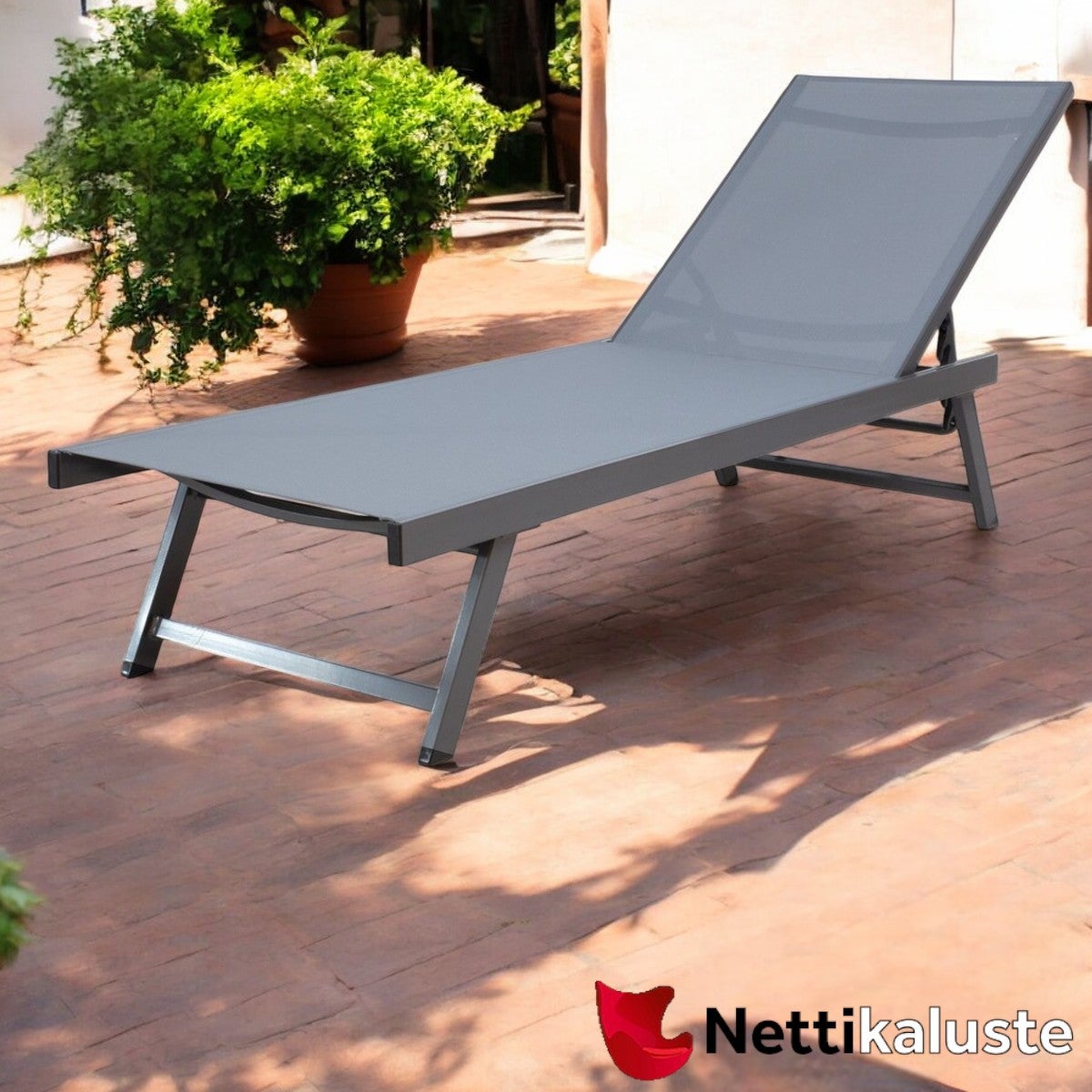 Kevyt, tukeva ja ruostumaton alumiinirunko: Kestävä runko on viimeistelty tyylikkäällä harmaalla jauhemaalilla, joka kestää säänvaihtelut ja käyttöä pitkään.