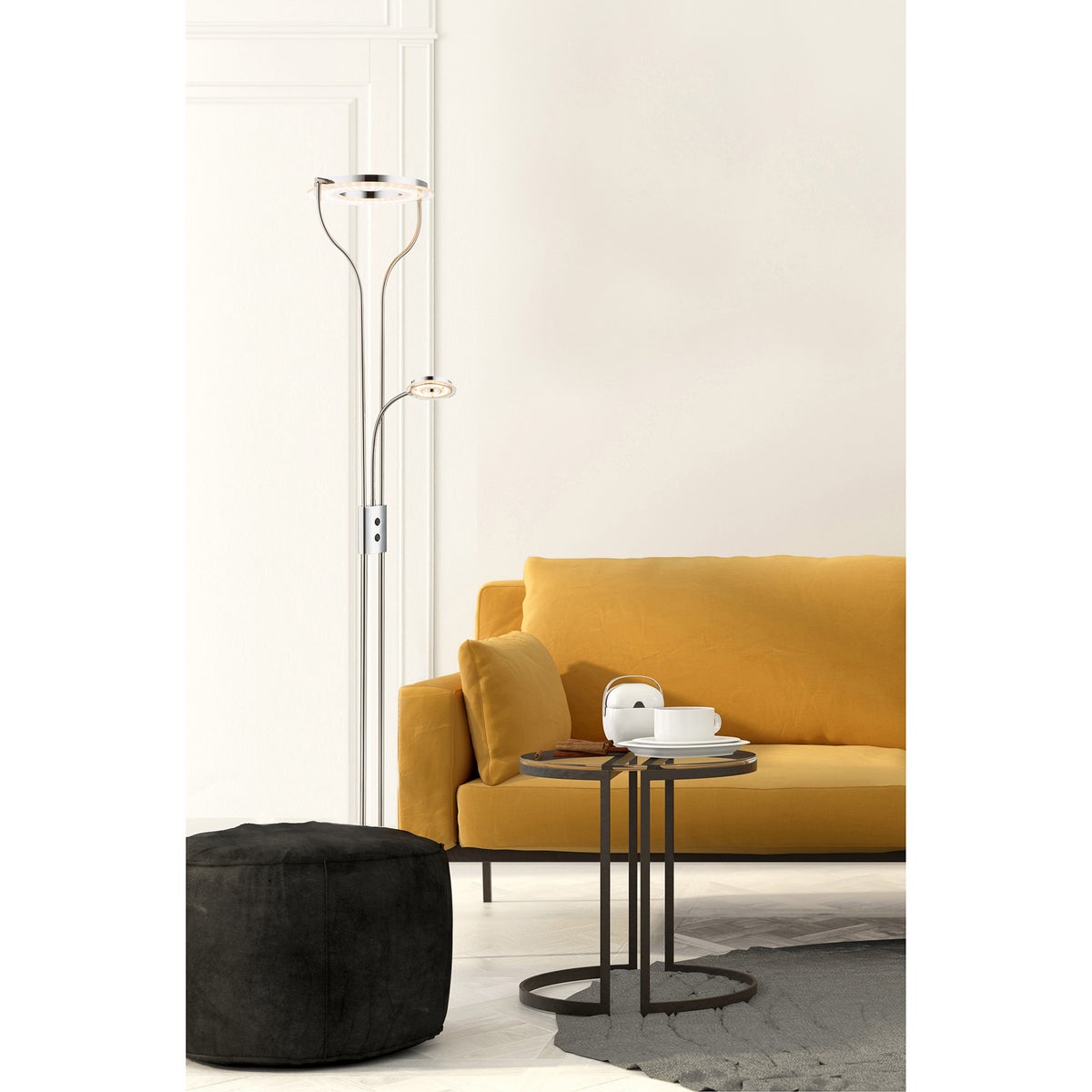 Faro-lattiavalaisin on tyylikäs ja monikäyttöinen valaisin, joka sopii täydellisesti monenlaisiin sisustuksiin. Sen ylöspäin suunnattu valonlähde luo miellyttävää, pehmeää valaistusta koko huoneeseen, ja lisäksi valaisimessa on joustavalla varrella varustettu kohdevalo, joka on ihanteellinen lukemiseen. Metallinen rakenne antaa modernin ilmeen, ja Faro on erinomainen valinta niin olohuoneeseen, makuuhuoneeseen kuin muihinkin tiloihin, joissa kaivataan sekä toimivuutta että tyyliä.