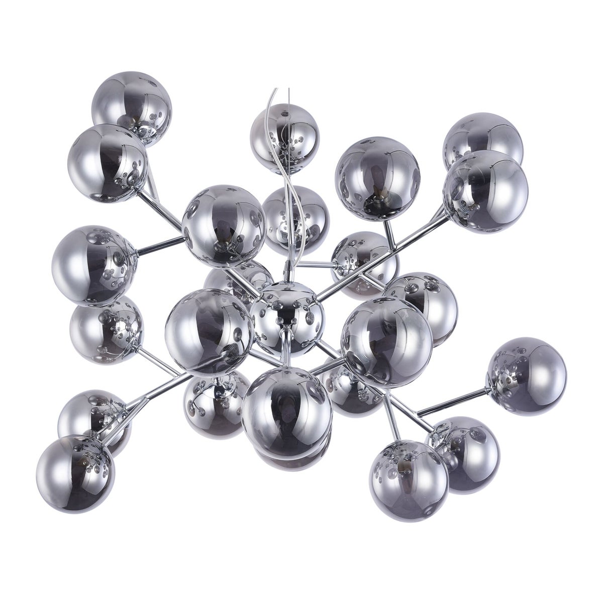 Plano riippuvalaisin tuo modernin ja elegantin designin täysin uudelle tasolle. Sen upea, kromin ja savunharmaan sävyjen yhdistelmä tekee siitä täydellisen katseenvangitsijan. Futuristiset varret, jotka kannattelevat savunvärisiä lasipalloja, tuovat sisustukseen sekä modernia eleganssia että näyttävyyttä. Jokainen pallo heijastaa valoa tyylikkäästi ja luo huoneeseen ainutlaatuisen valaistuksen ja tunnelman.