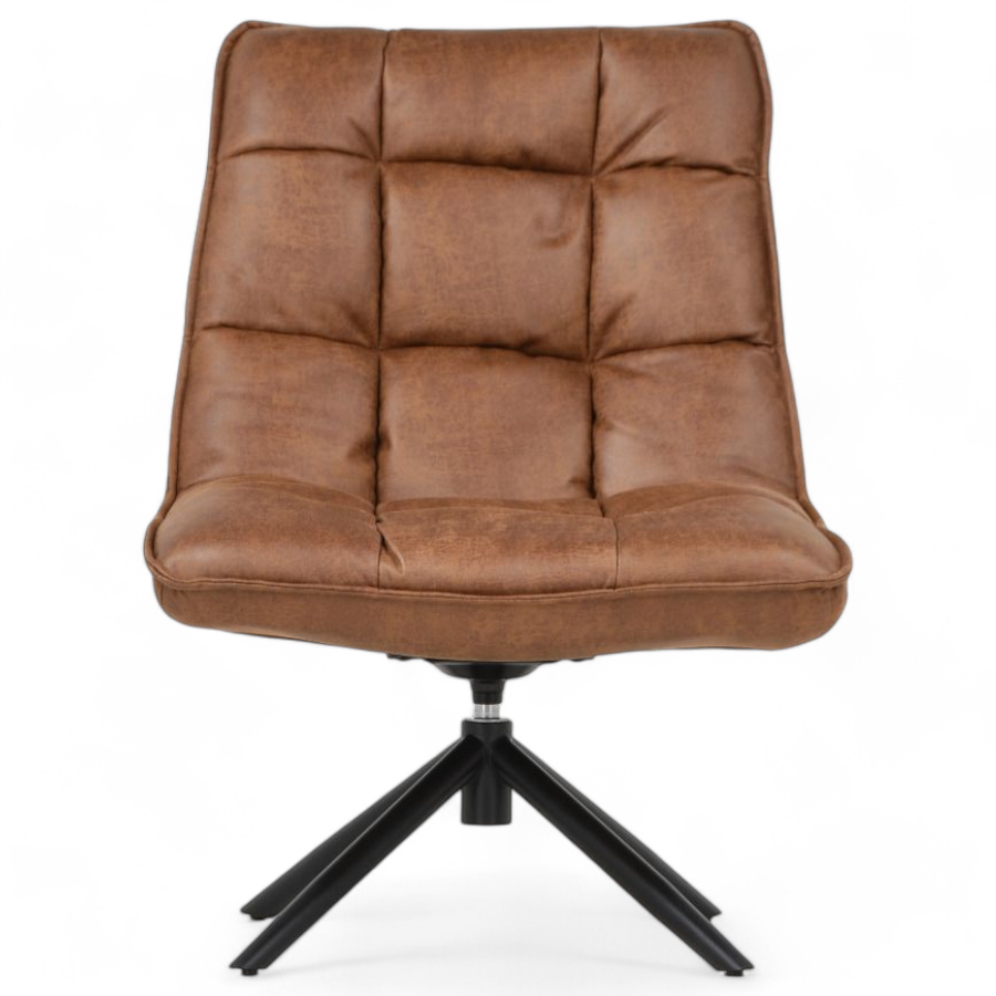 Tuolin laadukas rakenne koostuu kestävästä puu- ja metallirungosta, joka takaa pitkäikäisyyden. Istuin ja selkänoja ovat pehmustettu mukavalla vaahtomuovilla ja vanulla, mikä tekee tuolista miellyttävän käyttää pidempiäkin aikoja. Verhoiluna on laadukas konjakinruskea nahkajäljitelmäkangas, joka on 100 % polyesteriä ja tuo sisustukseen ripauksen ylellisyyttä ja lämpöä.