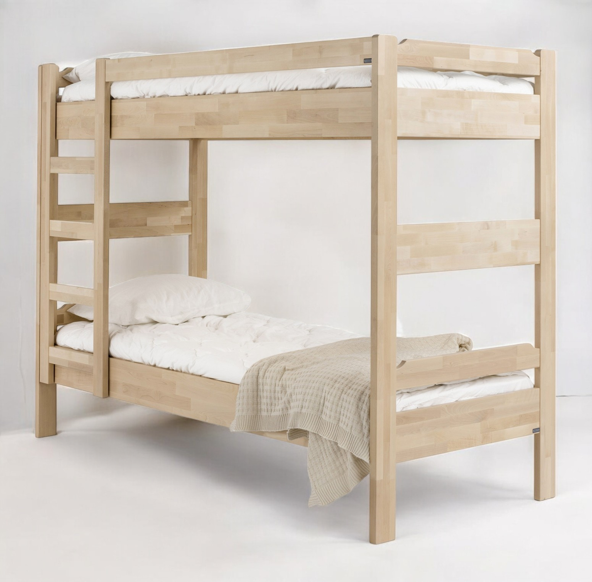Kuusamo-kerrossänky tuo kotiin aidon kotimaisen laadun. Se on valmistettu Suomessa massiivikoivusta, joka tekee rakenteesta tukevan ja pitkäikäisen. Tämä sänky ei ole vain lastenhuoneeseen – vahva runko ja tukevat vaneripohjat tekevät siitä sopivan myös aikuisille. Selkeä muotoilu ja massiivipuun luonnollinen ilme sopivat niin moderniin kotiin kuin mökkimiljööseen.