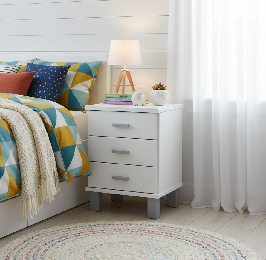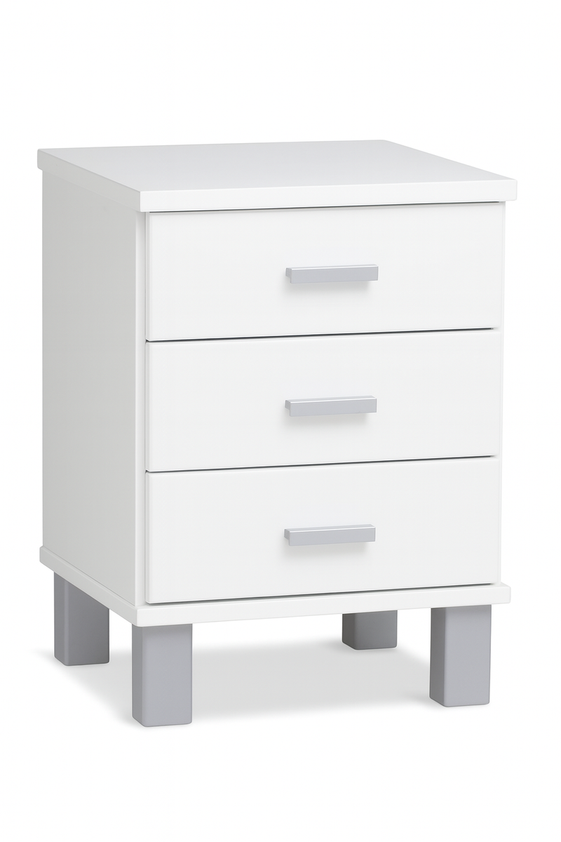 Korkealaatuisen Fondi-tuotesarjan laatikosto kolmella vetolaatikolla. Sopii erinomaisesti myös yöpöydäksi.