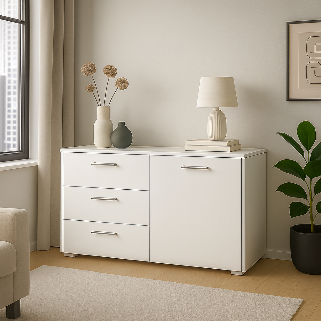 Täydellisen säilytysratkaisun tarjoava Helmi-senkki yhdistää käytännöllisyyden ja tyylikkyyden. Laadukkaassa Helmi-senkin kaapissa ja kolmessa tilavassa vetolaatikossa on runsaasti tilaa kaikenlaiselle säilytettävälle. Helmi-senkki toimii myös kätevänä apupöytänä eri tiloissa.