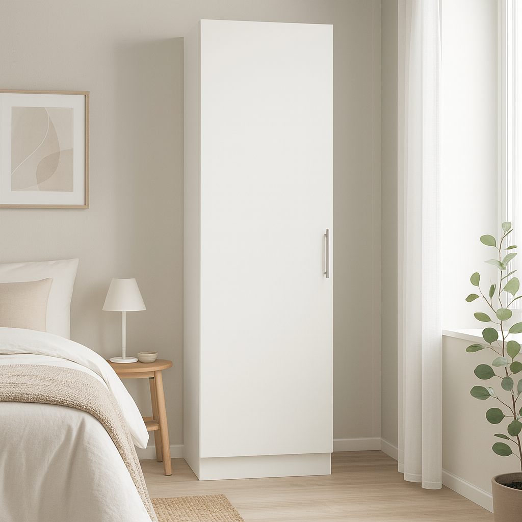 Eazy on kotimainen, edullinen vaatekaappi, joka on tarkoitettu kiinnitettäväksi seinään kiintokalusteiden tapaan. Eazy vaatekaappi on valmistettu ympäristöystävällisestä 16 mm E1-luokan MFC-kalustelevystä, jonka kulutuksenkesto ja värinpitävyys ovat erinomaiset.