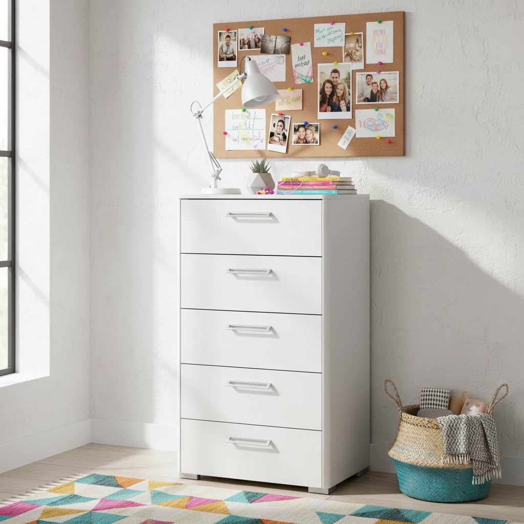 Korkeassa Helmi-lipastossa on viisi tilavaa vetolaatikkoa, jotka tarjoavat runsaasti säilytystilaa kaikille tärkeille tavaroillesi. Olipa kyseessä olohuone, makuuhuone tai mikä tahansa huone, tämä lipasto sopii täydellisesti sisustukseesi.
