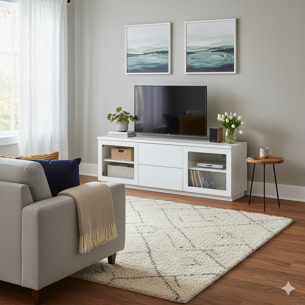 Anton taso 150 cm tuo olohuoneeseen selkeää suomalaista muotoilua ja käytännöllistä arjen toimivuutta. Kotimainen Hiipakka Oy valmistaa Anton-sarjan huolellisesti viimeistellyillä rakenteilla, jotka kestävät aikaa ja käyttöä. Valkoinen runko, rauhallinen värimaailma ja pehmeästi sulkeutuvat mekanismit tekevät tästä tasosta luotettavan ja tyylikkään osan olohuonetta. Lasiovien taakse saat esille elektroniikan tai kauniit sisustusesineet, kun taas keskiosan laatikoissa säilytät pienet tarvikkeet siististi poissa näkyvistä.