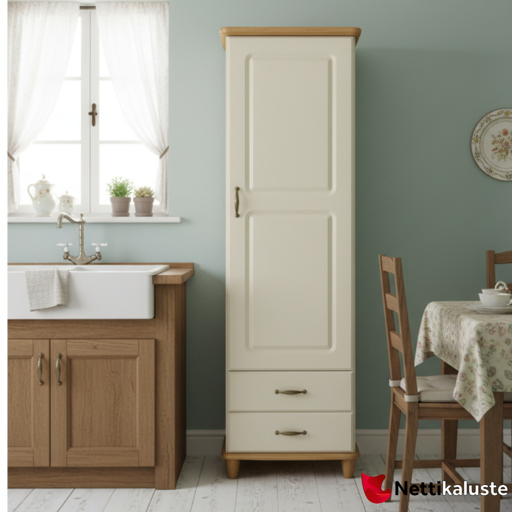 Laadukkaat Salice-saranat ja Remen liukukiskot tuovat arkeen sujuvuutta ja hiljaista käyttömukavuutta. Kaksi runkoväriä ja neljä kansi- ja sokkelivärivaihtoehtoa mahdollistavat kaapin viimeistelyn juuri oman sisustustyylin mukaan. Aino-kaappi toimitetaan osina, ja sen selkeä rakenne helpottaa kokoamista.